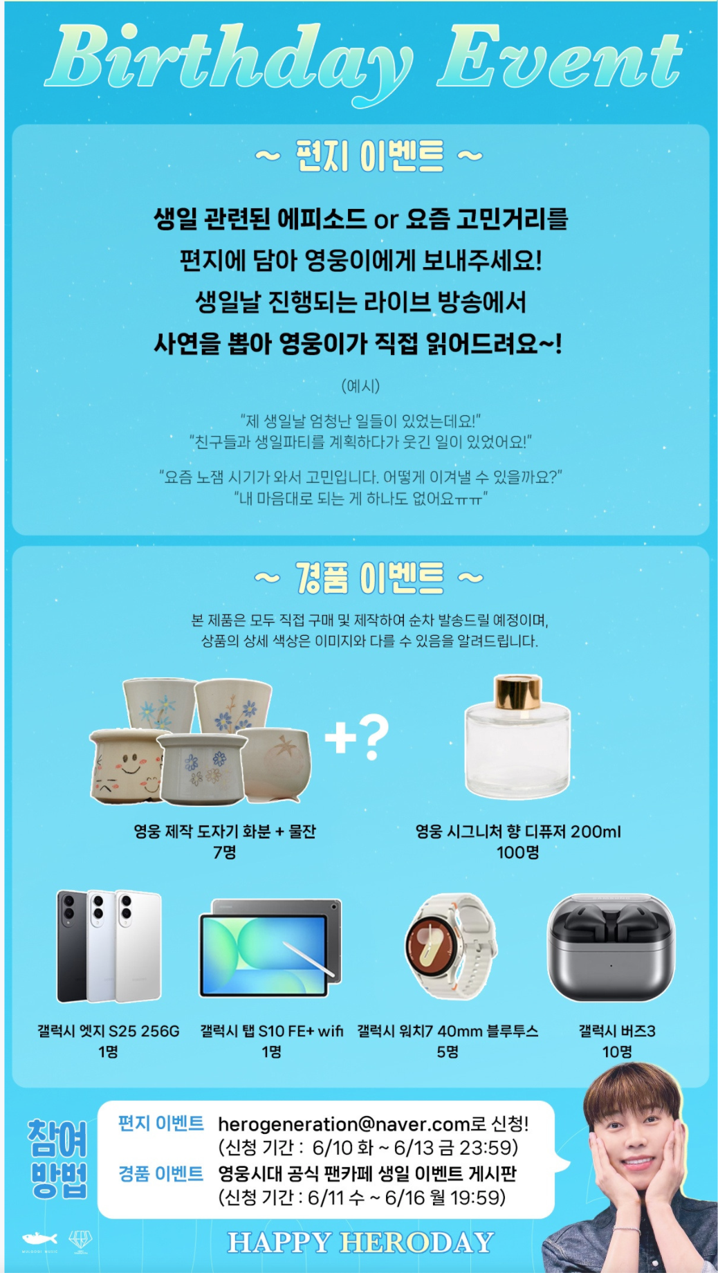 - 참여 방법: 팬카페 생일 게시판에서 양식에 따라 신청
